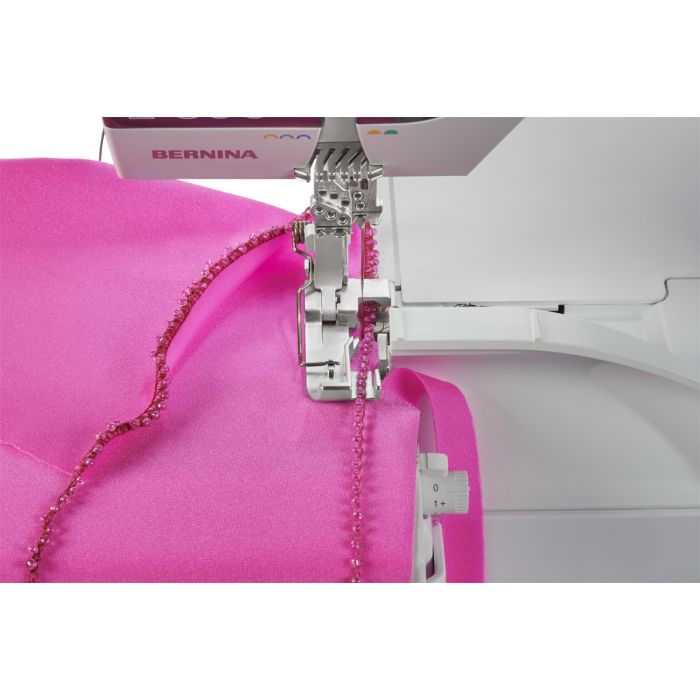 With the Beading and Sequin Foot strings of beads and sequins up to a maximum diameter of 6 mm can be sewn on easily and quickly. It is used to create a beautiful finishing along fabric edges or decorations along flat seams. In combination with the right seam guide as guiding aid, the seams will be especially precise.