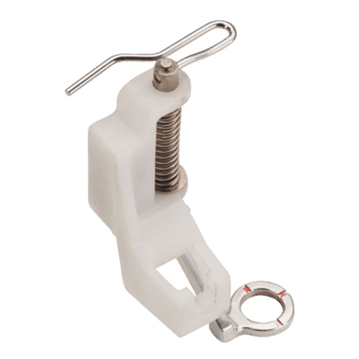 The hopper embroidery foot is the perfect choice when it comes to embroidering on pile and bulky fabrics, such as terrycloth. Thanks to the spring mechanism, the optimum pressure is applied to the embroidered material, while at the same time, the movement of the foot compensates for any uneven areas, such as puffy lettering or multilayer quilts, to give beautiful stitching results.