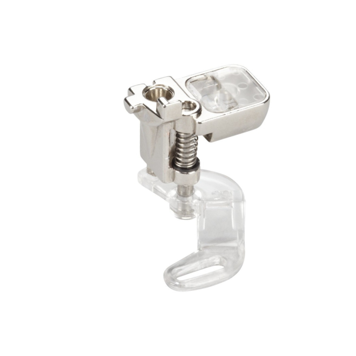 The vertical spring presses the foot securely to your project, preventing the fabric from riding up with the needle (flagging). The material therefore lies flat while it is being sewn, allowing you to produce neat, consistent stitches.