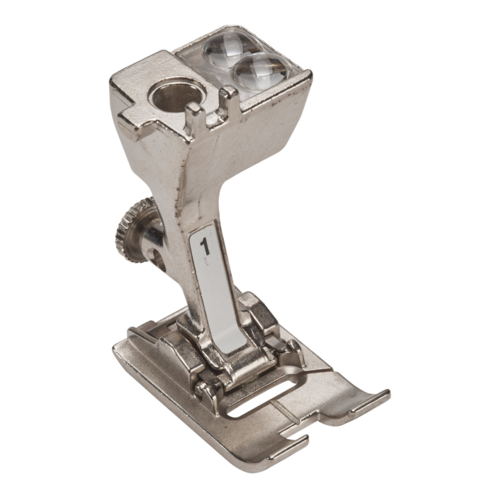 This presser foot makes quick work of assorted utility and decorative stitches, as well as the sewing of waistbands and hems on heavy fabrics such as corduroy, denim or wool. Reverse pattern foot # 1C features a side slot through which the upper thread can be conveniently pulled under the foot and to the back.