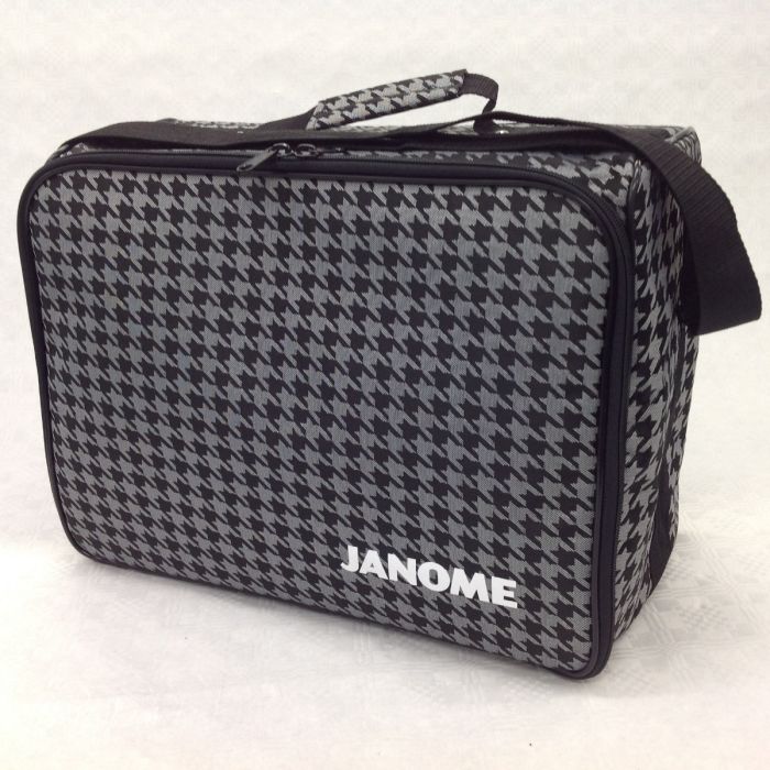 In stylish grey and black houndstooth check, this padded bag with solid base can accomodate most standard size machines, and unzips fully at the front for easy loading.