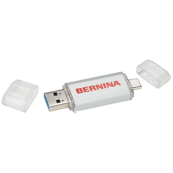 The Bernina USB Stick is a practical and reliable accessory for compatible BERNINA sewing machines. These models feature an optional embroidery computer, allowing for precise, computer-controlled embroidery.