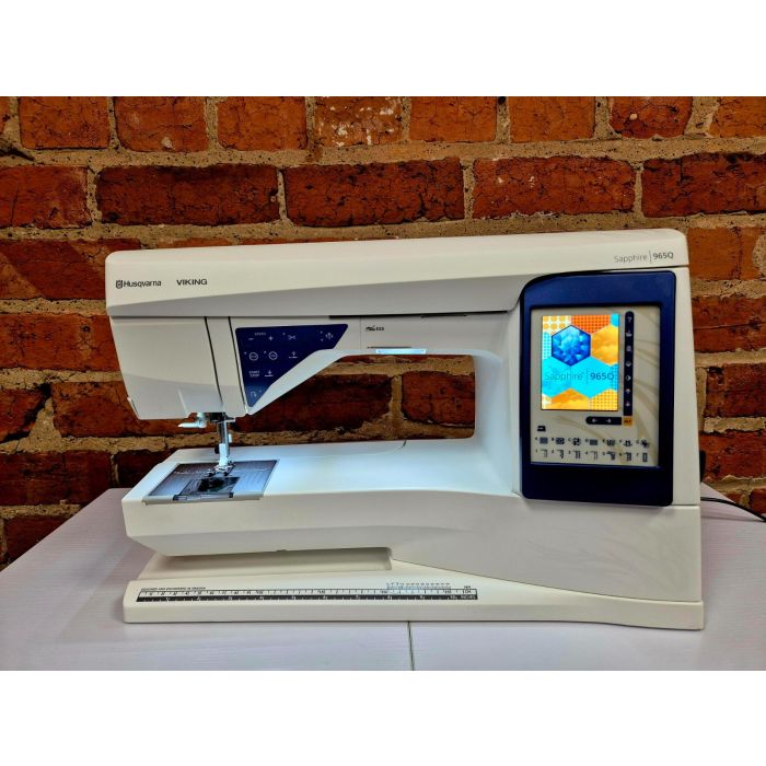 This Pre-owned Husqvarna Viking Sapphire 965Q is in good working condition and comes complete with all original accessories. Although the original packaging is not included, the machine will be securely packed using our high-quality materials to ensure safe courier delivery. Some minor wear and tear marks are present.
