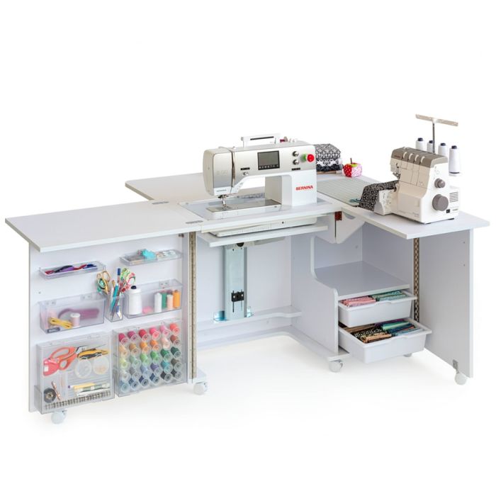 With the NOVA you can store both your sewing machine, overlocker and all your vital sewing accessories in one easy to get at location- no problem